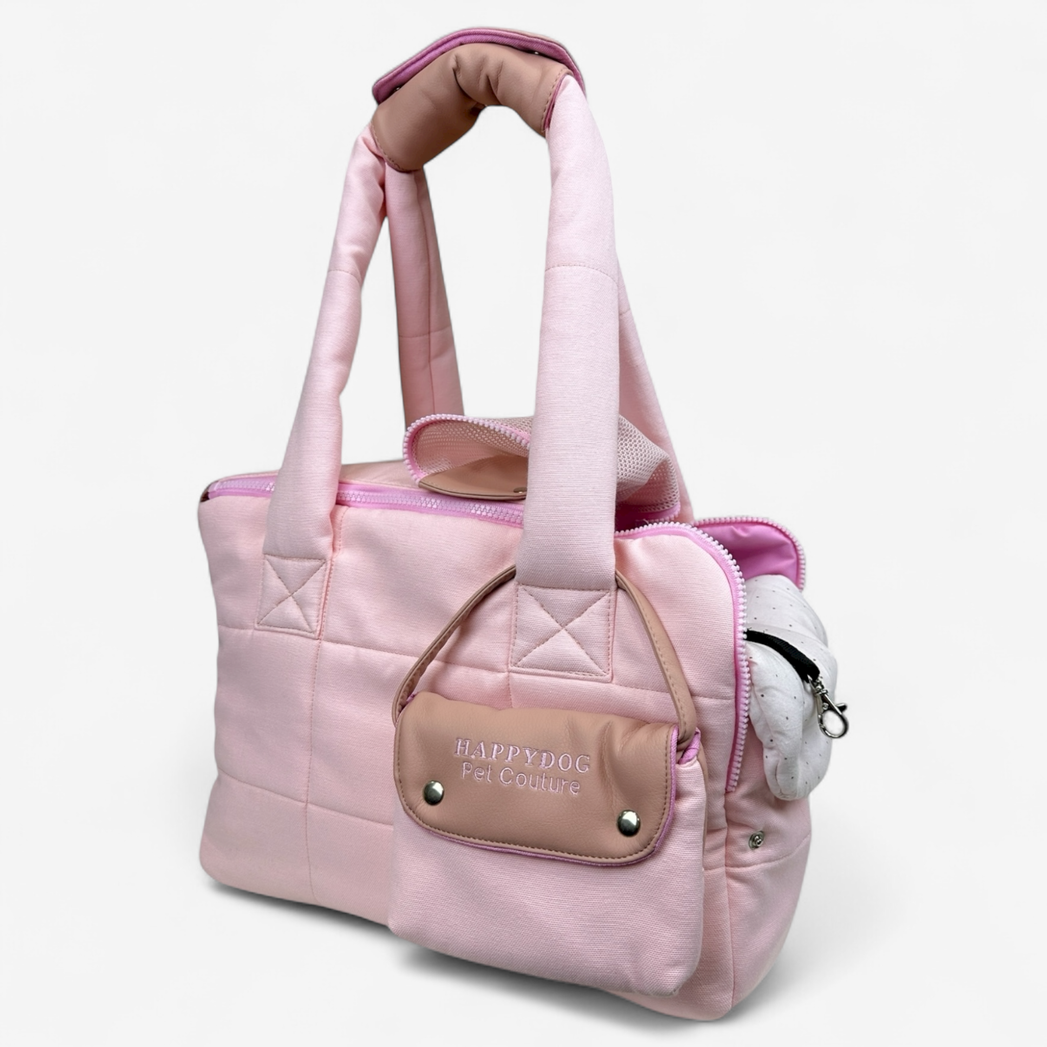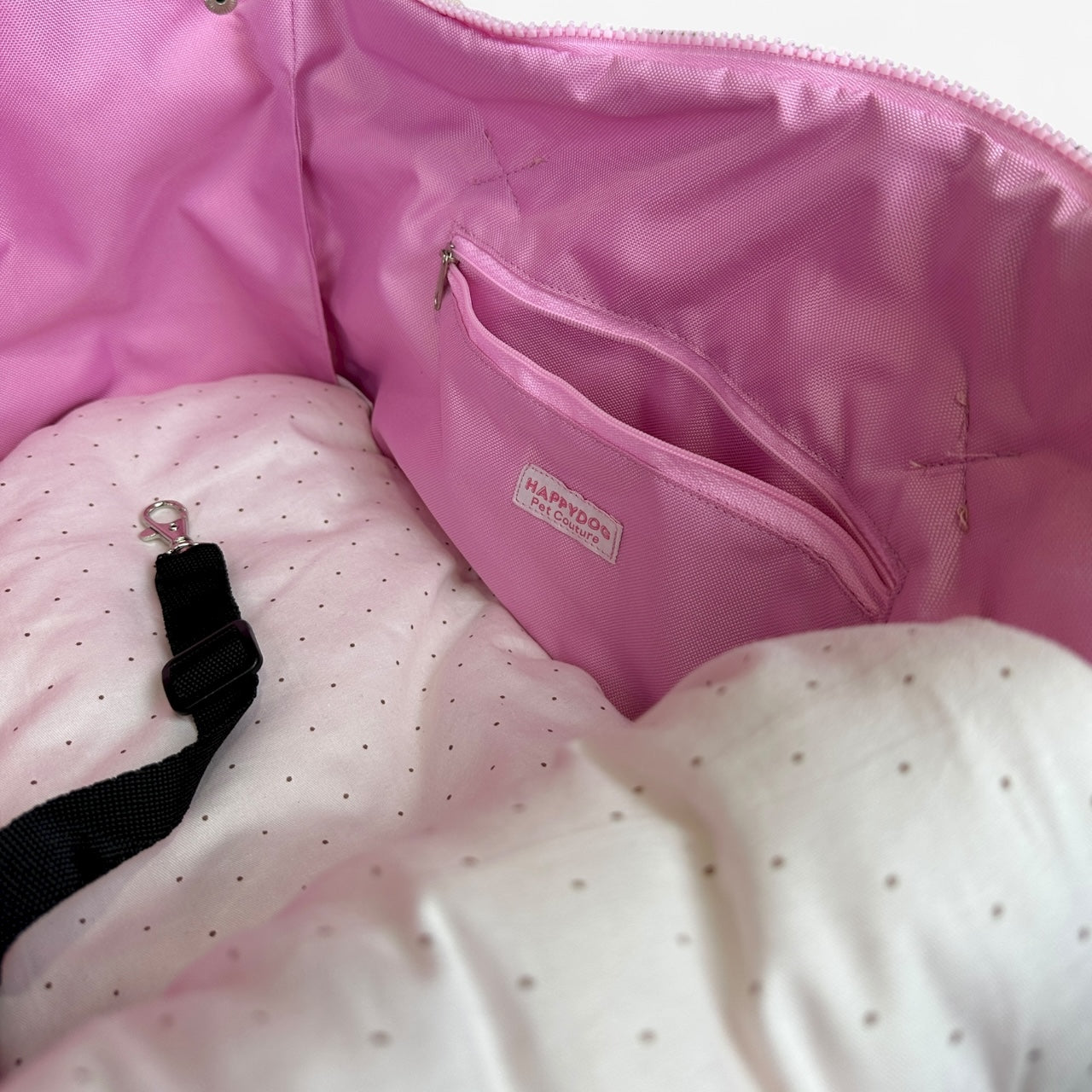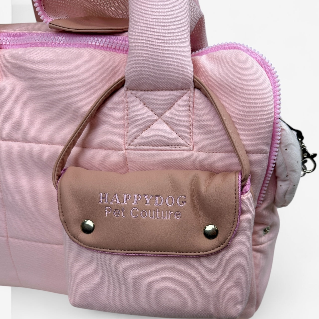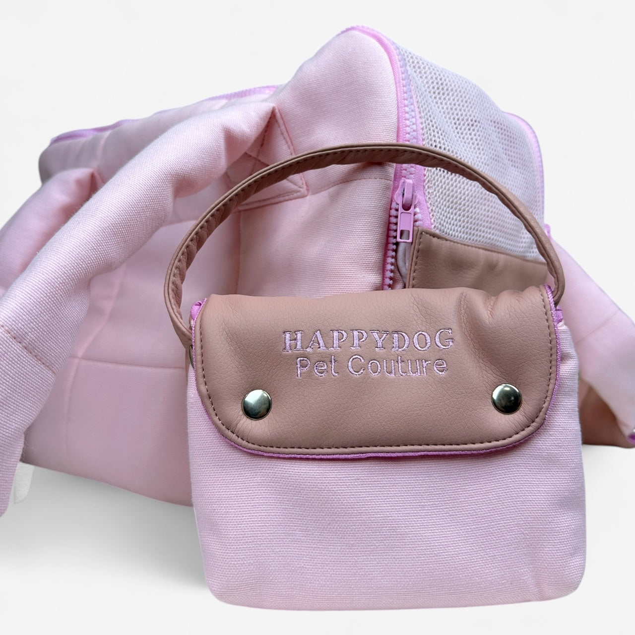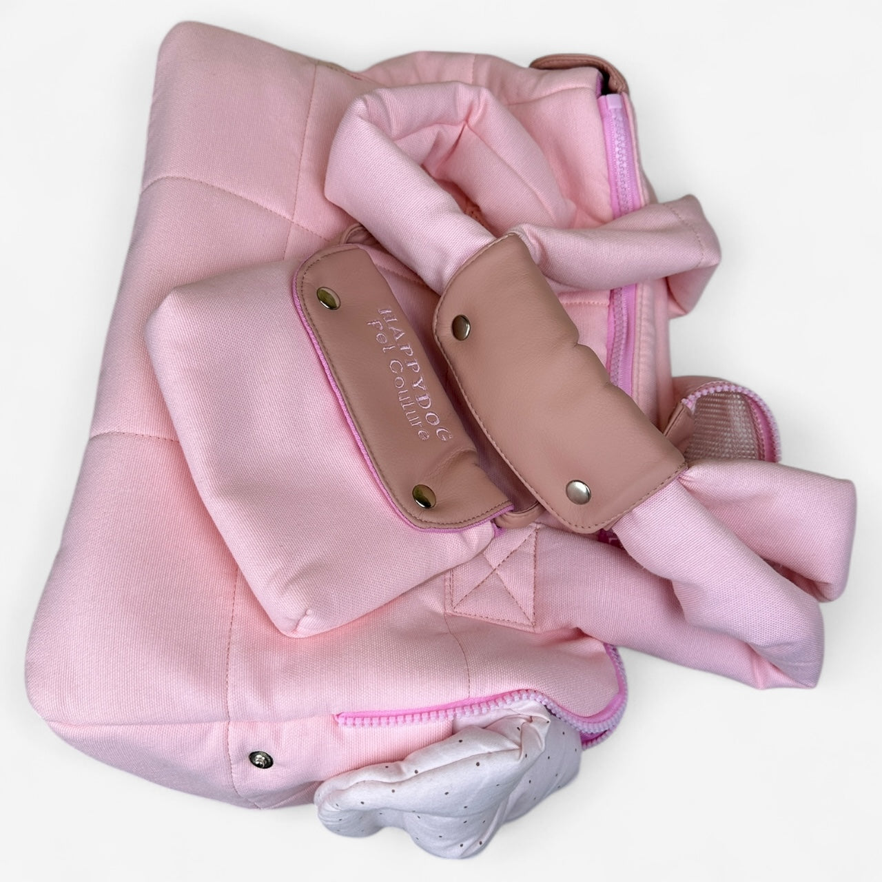Introducing the HAPPYDOG COUTURE soft sided dog carrier, made with hypoallergenic cotton and a padded interior for ultimate comfort. Featuring a removable inside pillow and bottom foam cushion, this carrier also includes a safety leash and inside pocket with zipper. Handcrafted with love in Ukraine, other colors and personalized stitching available upon request.