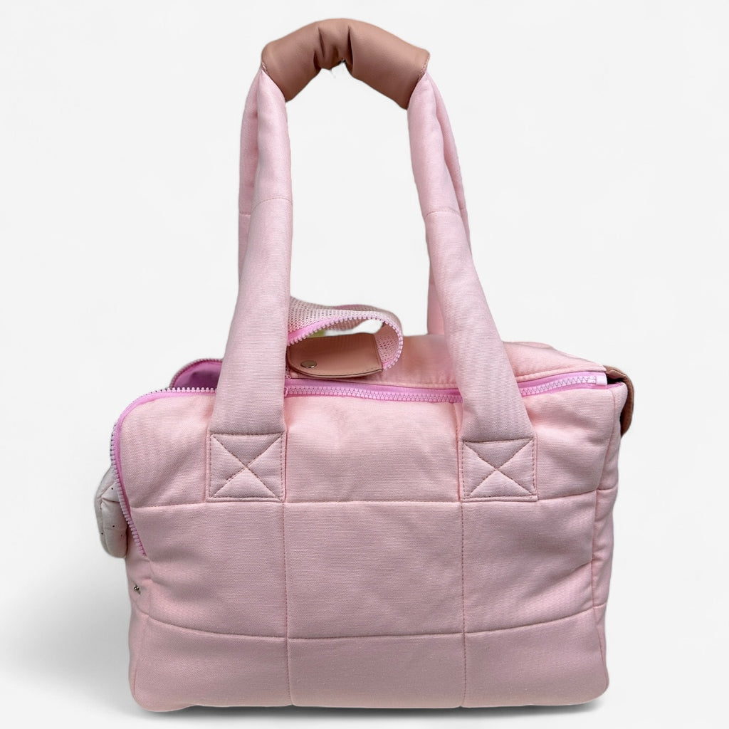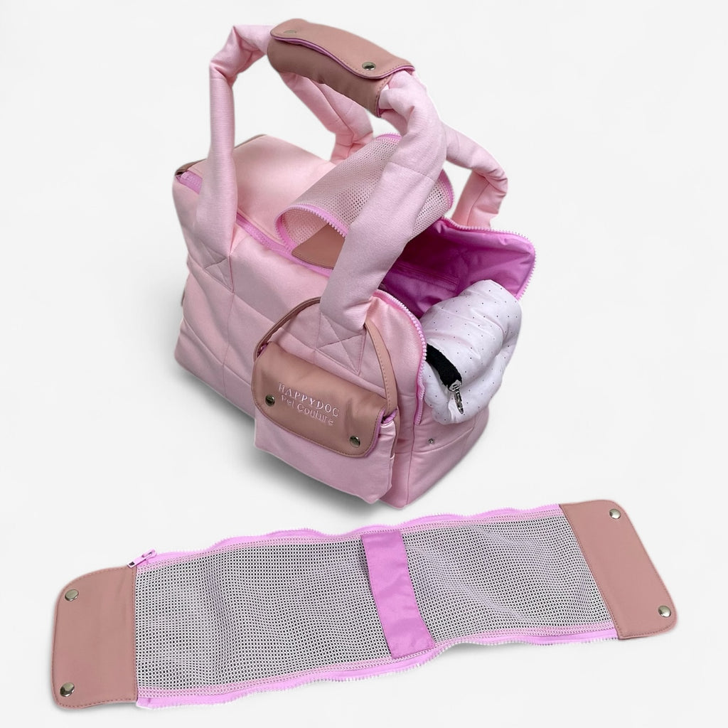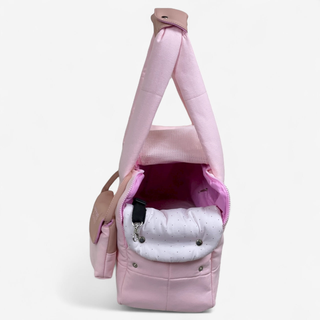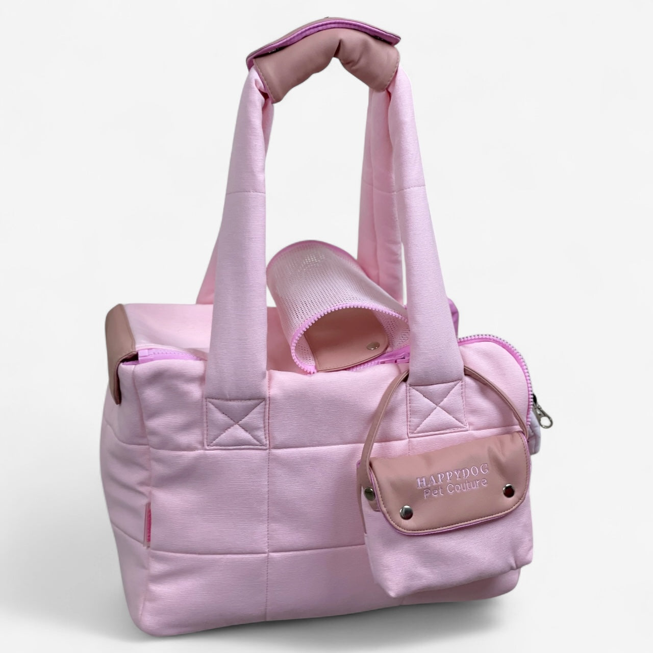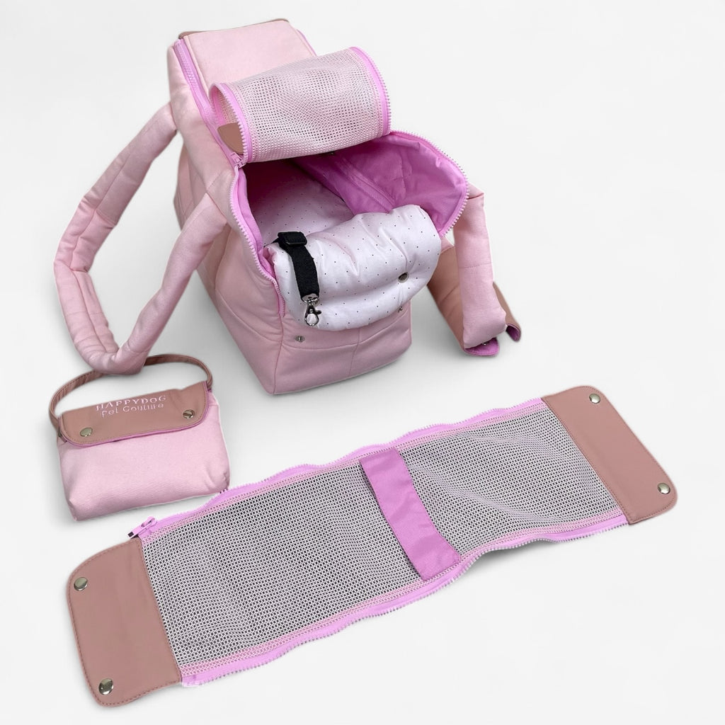 Introducing the HAPPYDOG COUTURE soft sided dog carrier, made with hypoallergenic cotton and a padded interior for ultimate comfort. Featuring a removable inside pillow and bottom foam cushion, this carrier also includes a safety leash and inside pocket with zipper. Handcrafted with love in Ukraine, other colors and personalized stitching available upon request.