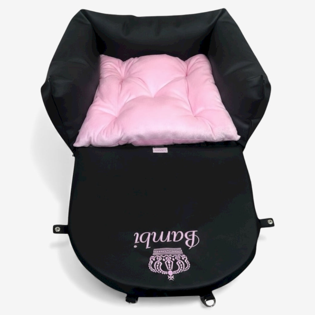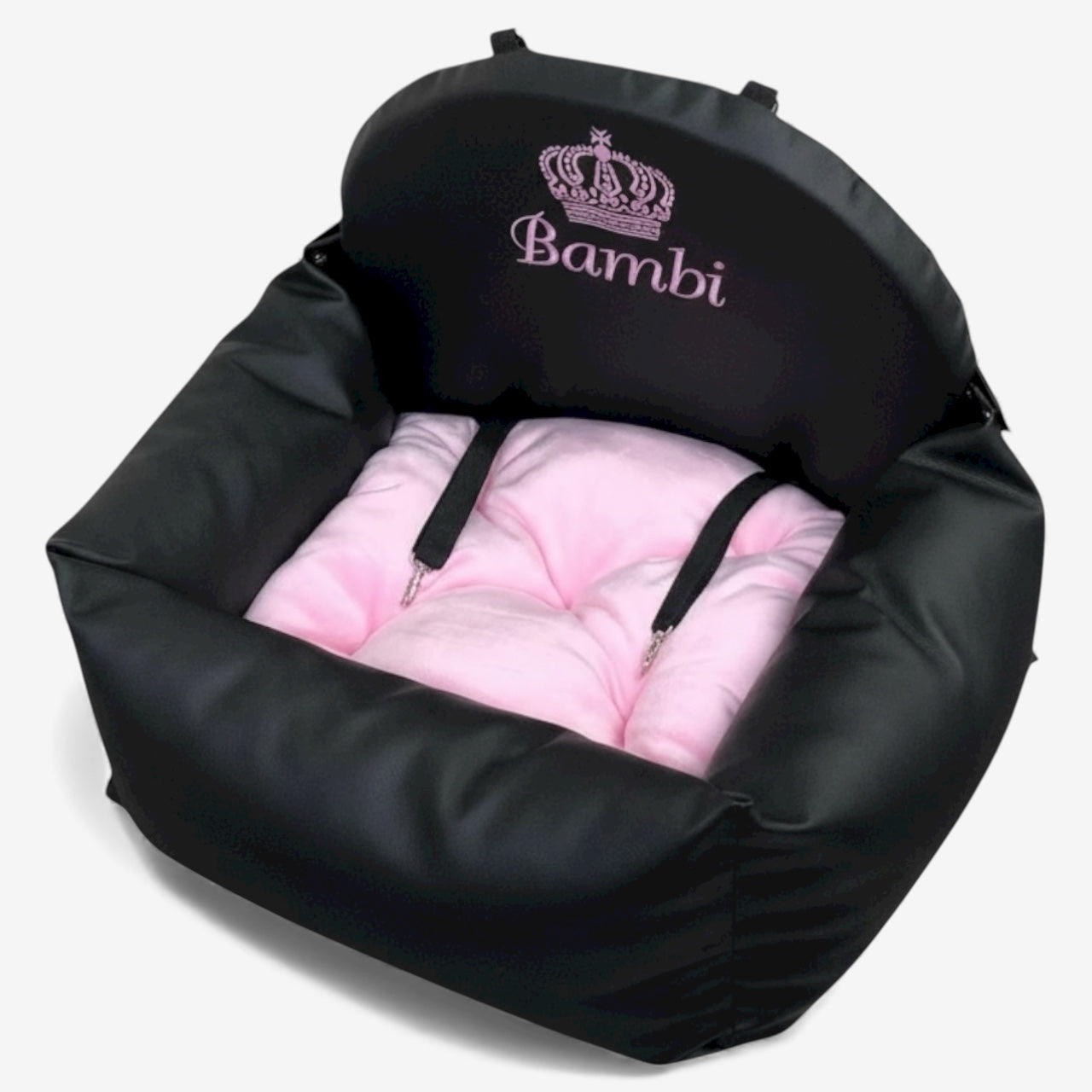 Black and Pink Personalized Dog Car Seat / Luxury Driving Kit