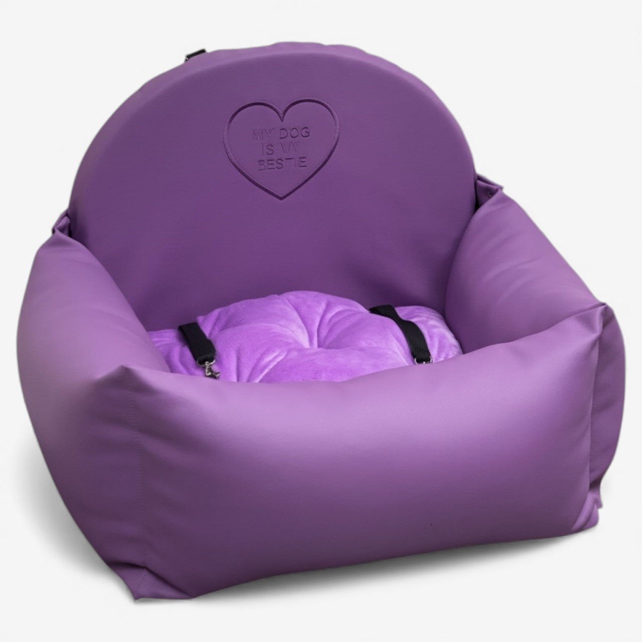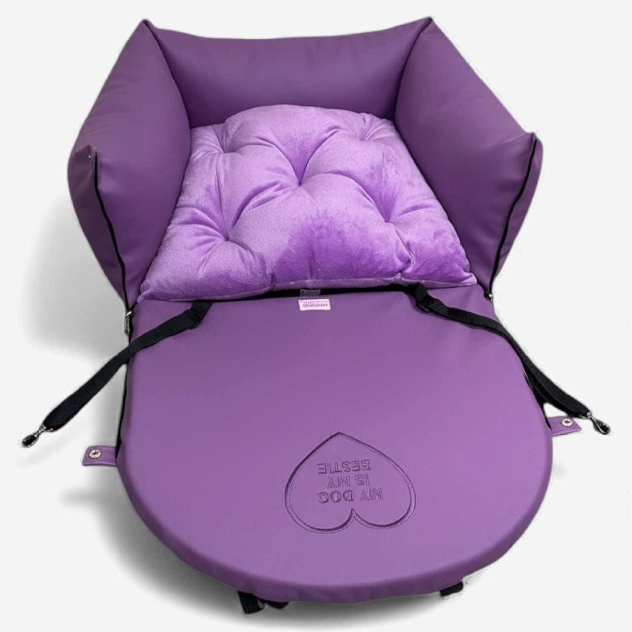 Lilac Faux Leather Dog Car Seat – Convertible to a Bed, Perfect for Travel, Hotels, and Picnics