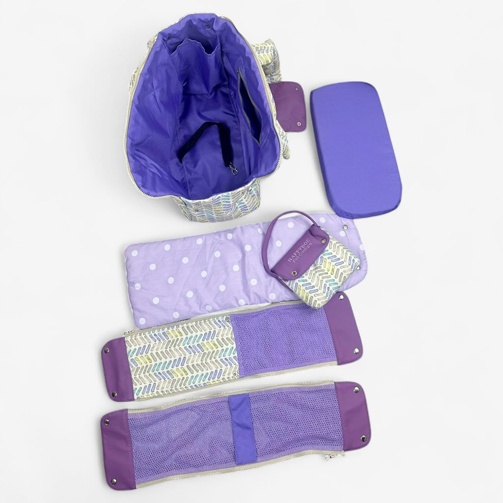 This designer dog carrier features a stylish beige and lavender color combination and a convenient mesh window for ventilation. With 2 removable covers, your furry companion will travel in comfort and style. Perfect for stylish and functional transportation.