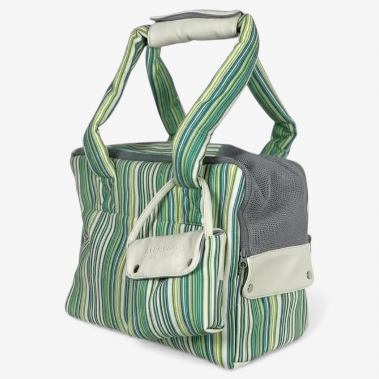 Cream and striped green designer dog carrier