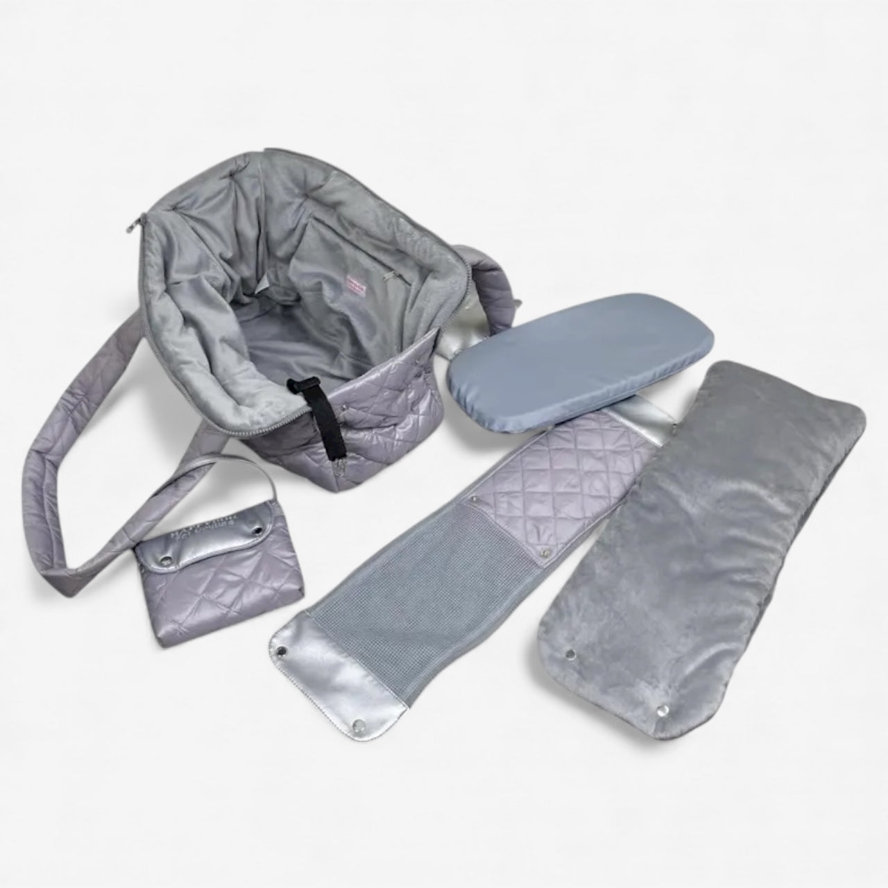Luxury Gray & Silver Dog Carrier – Stylish & Cozy Travel Bag for Small Dogs & Puppies