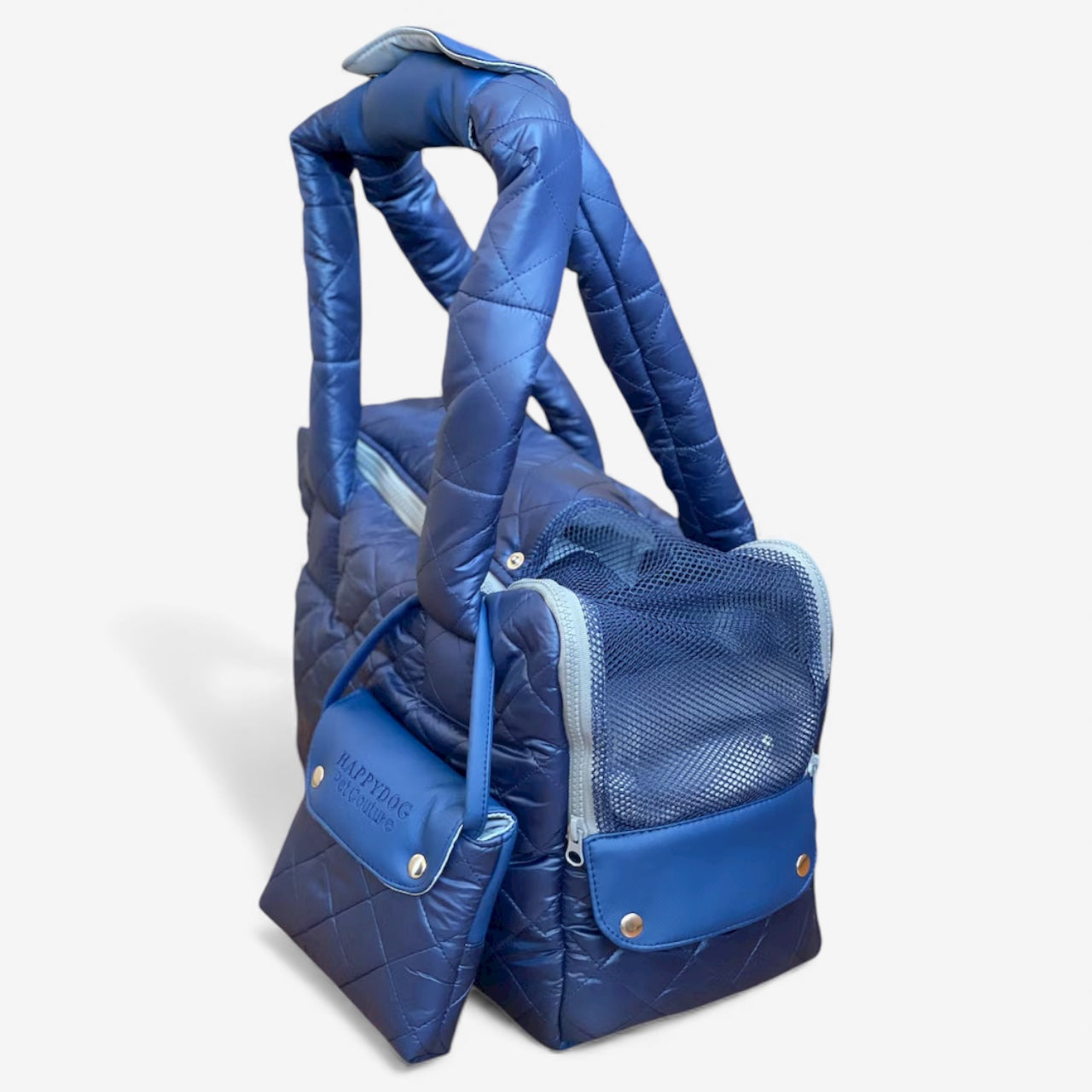 Navy Blue Dog Carrier Bag with Two Covers & Soft gray Cushion