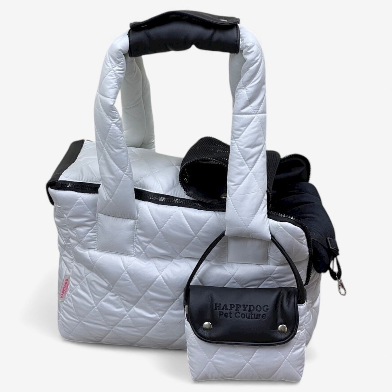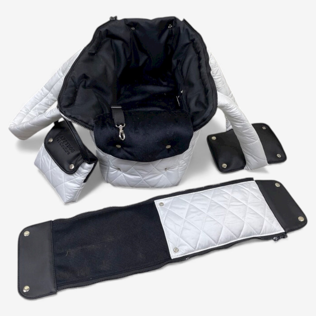 White and black designer dog carrier for small dog or puppy Padded winter dog bag