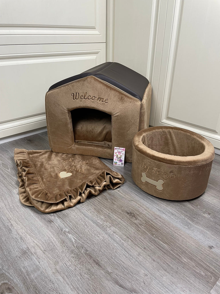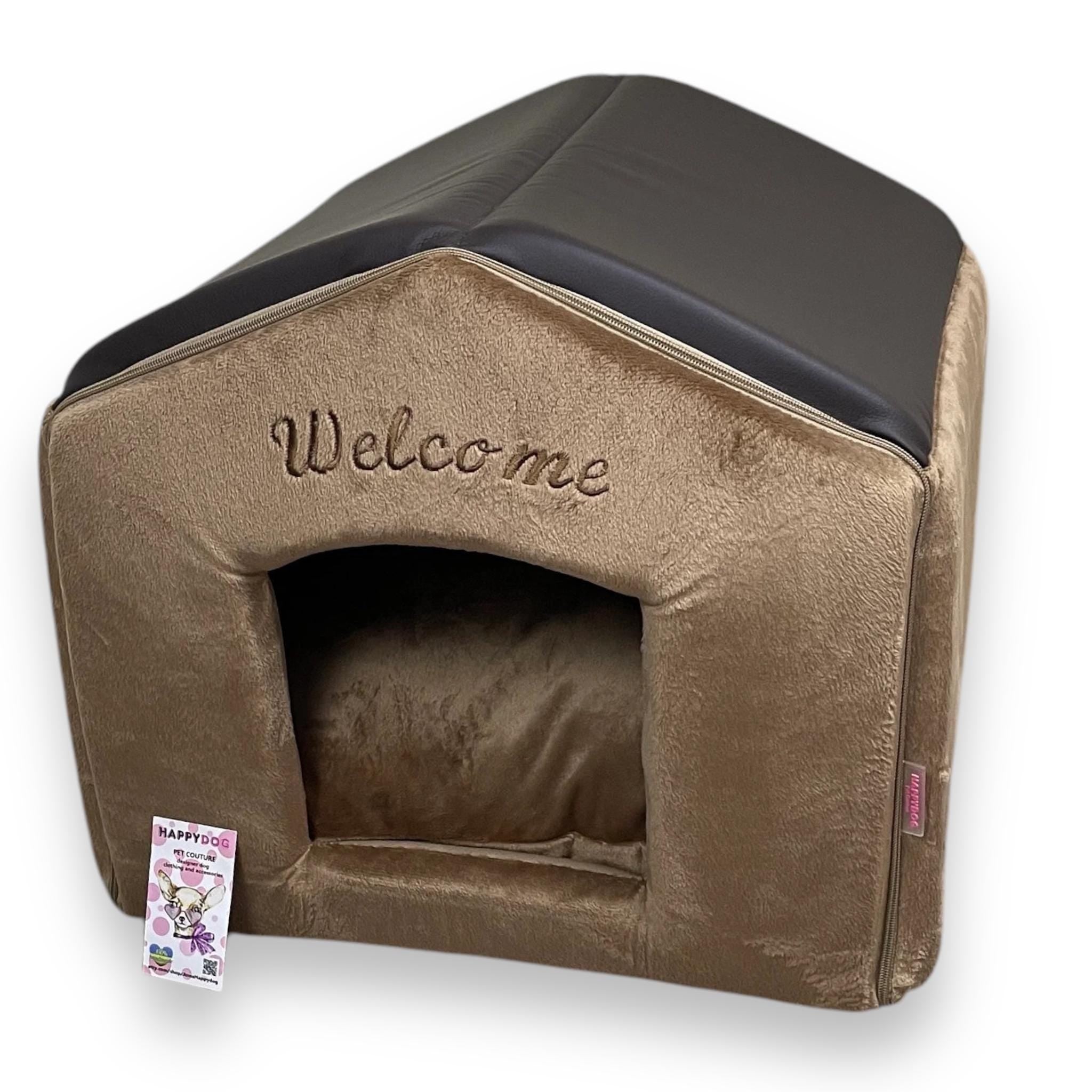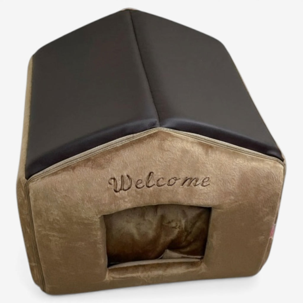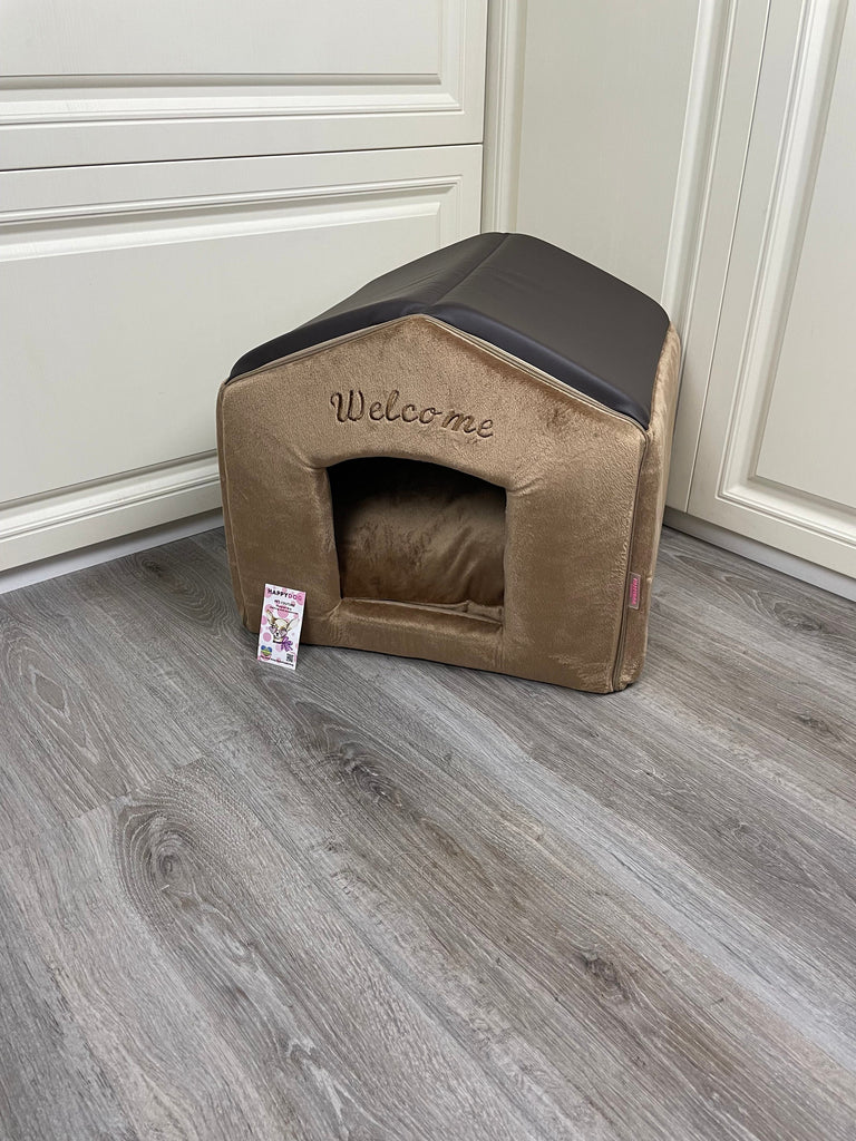Small Brown Dog House – Vegan Leather & Minky Fur | Soft Cozy Puppy Bed | Handmade in Ukraine