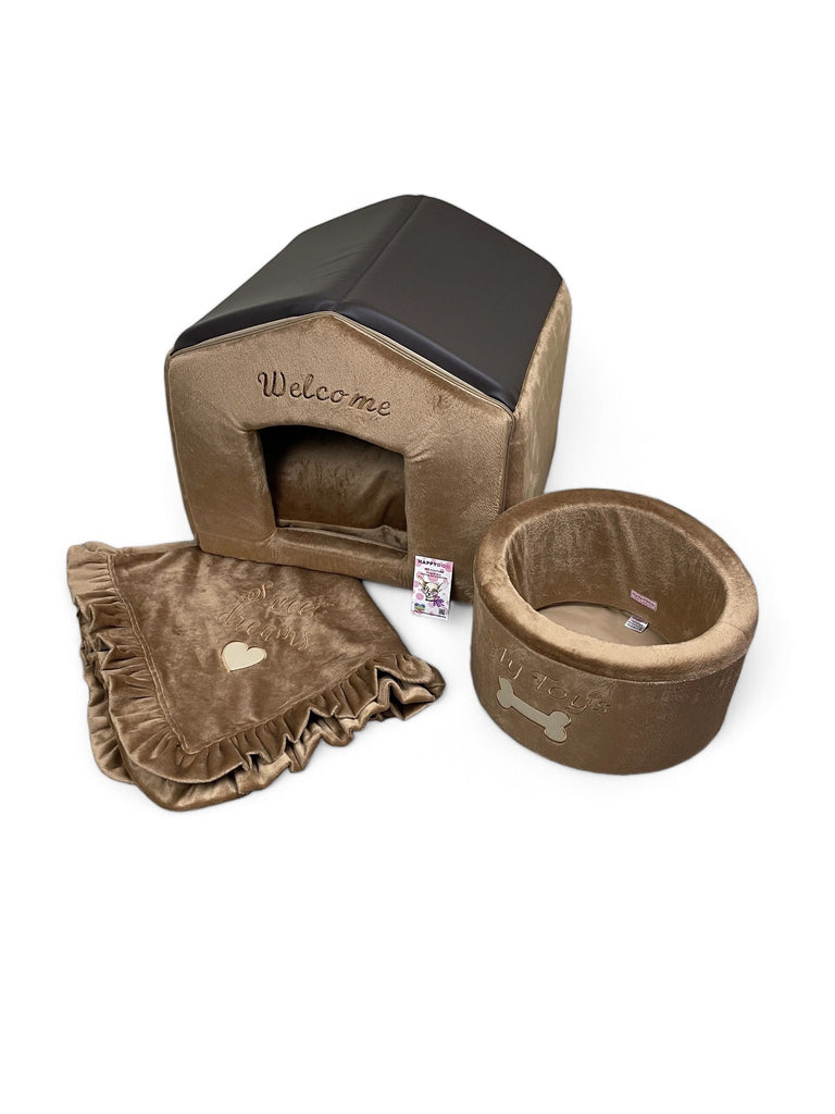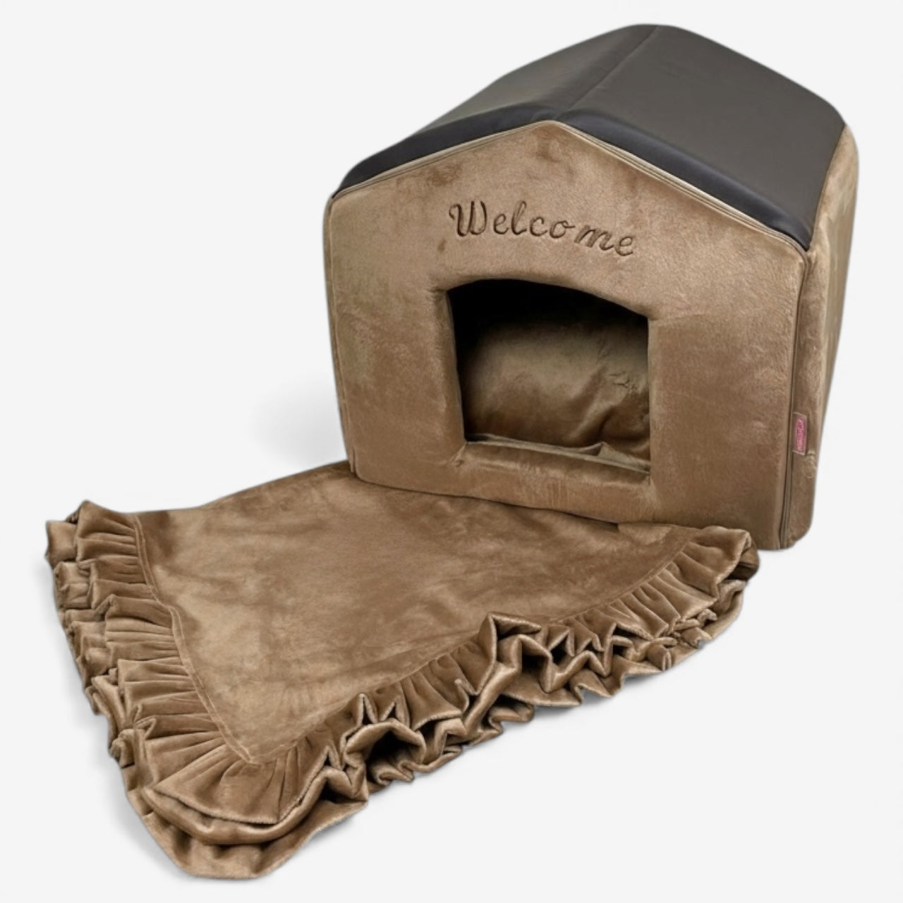 This beautiful HAPPYDOG PET COUTURE house is a soft, stylish, and cozy space for your pup.